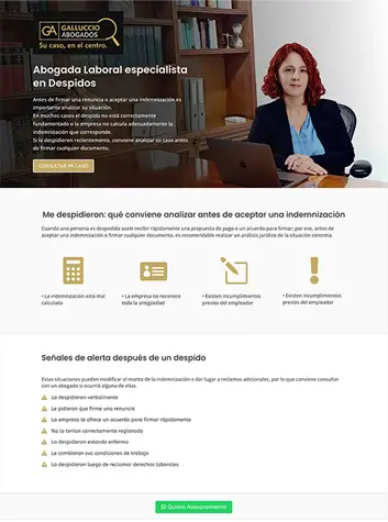 Desarrollo de una página de aterrizaje estratégica para la Dra. Natalia Galluccio, especialista en derecho laboral. El objetivo fue transformar información legal compleja en una experiencia de usuario clara y orientada a la conversión.